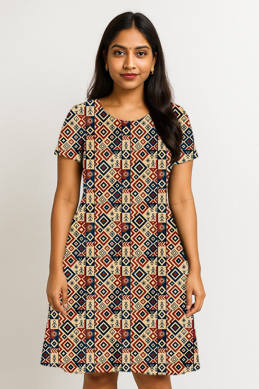 All Over Printed A-Line Bohemian Printed Dress for Women