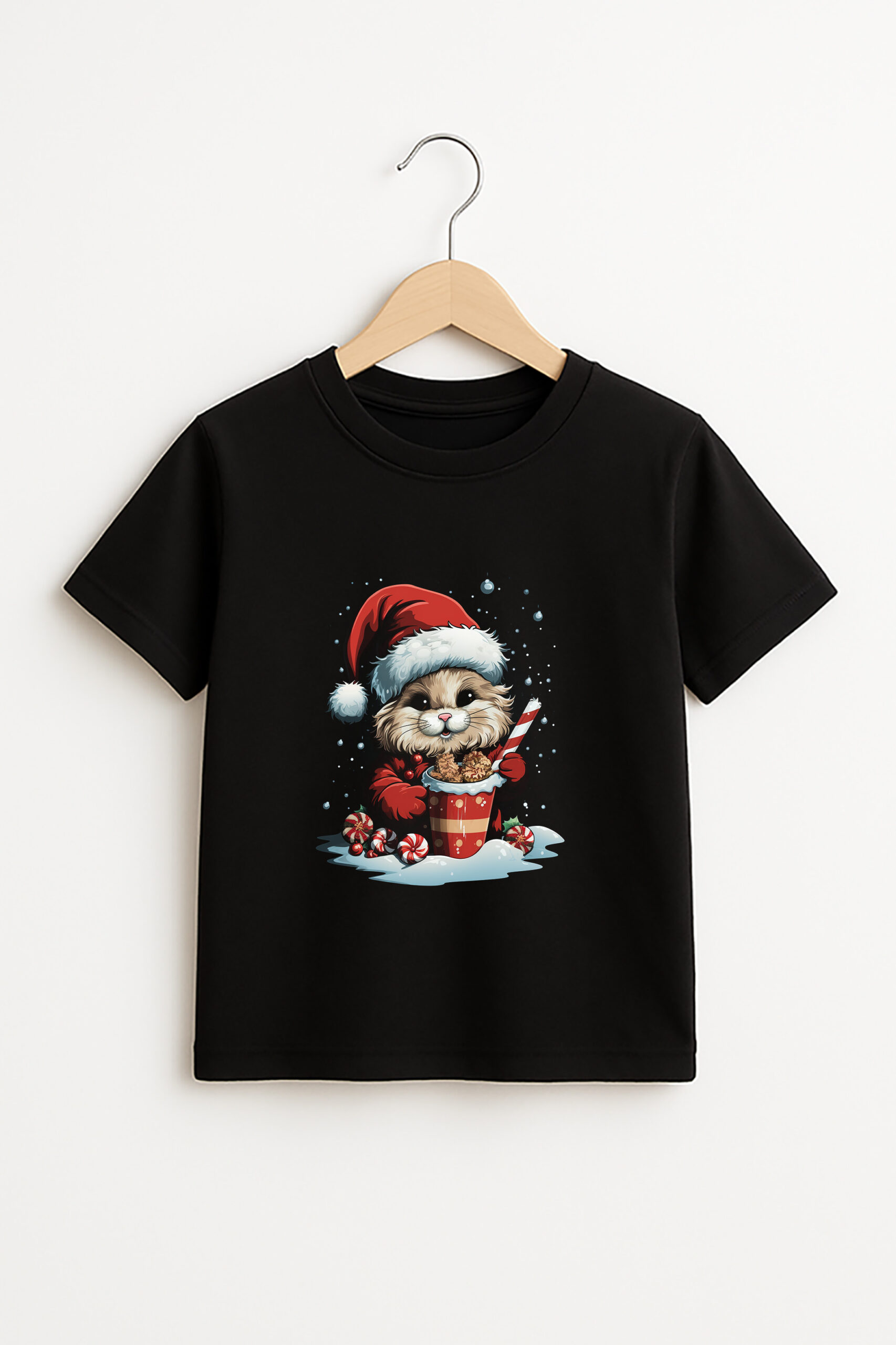 These colors complement the Bunny Santa artwork beautifully, creating a warm and festive vibe kids will love wearing during the season.