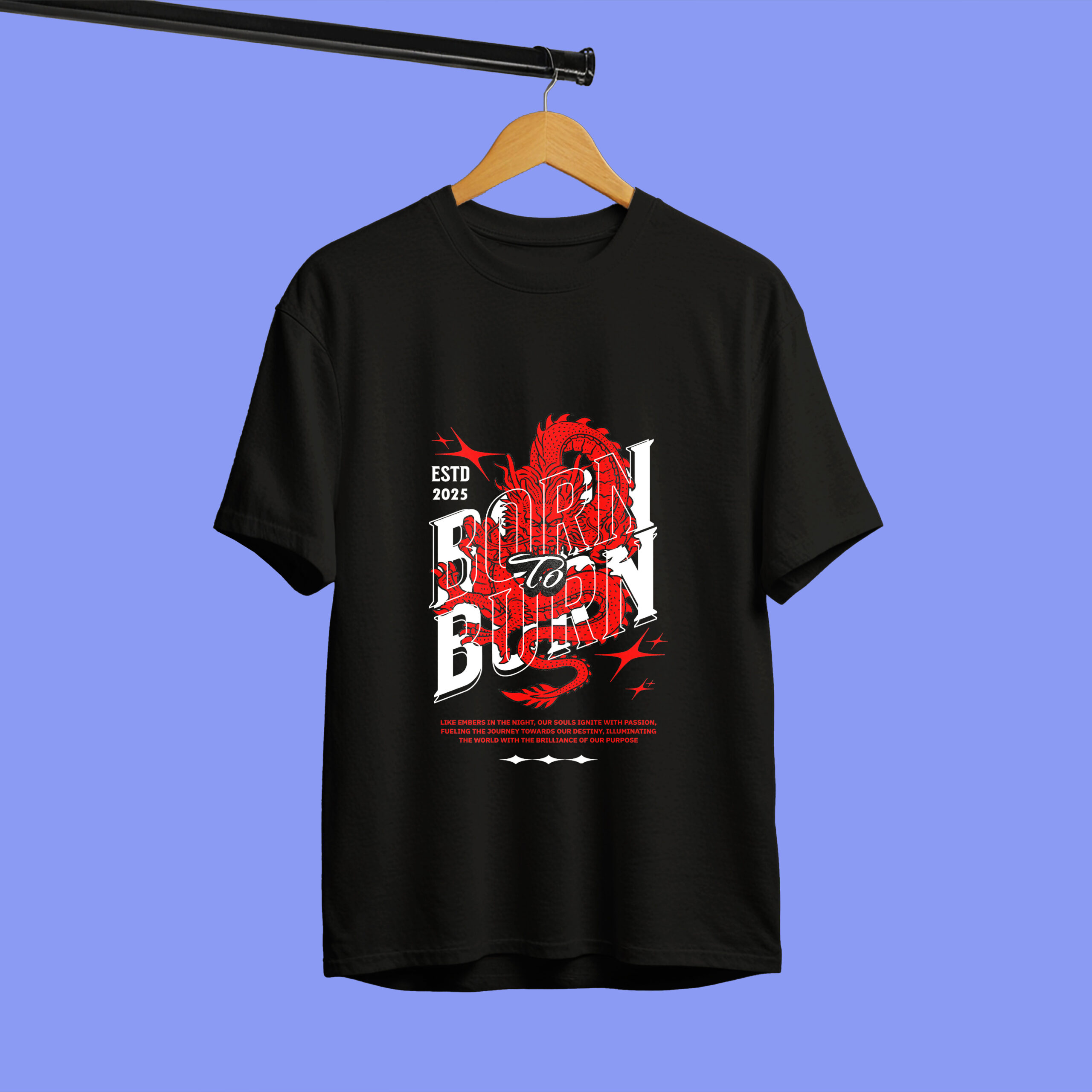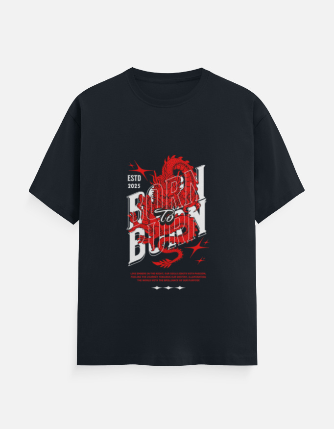 - Graphic Tees: Striking red dragon with the bold slogan “Born to Burn”