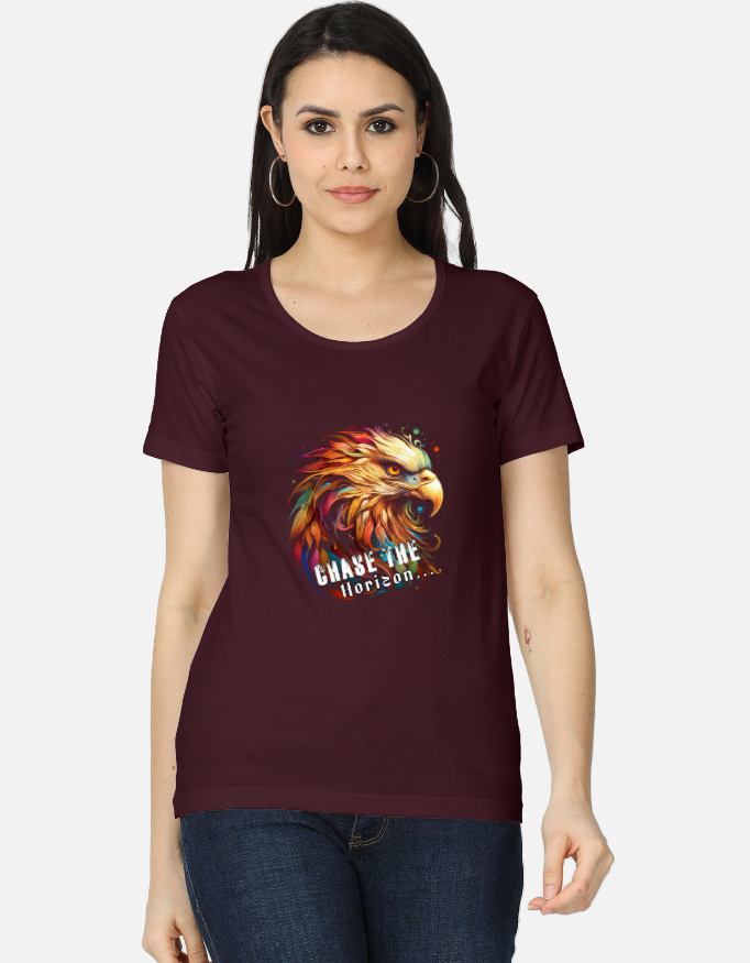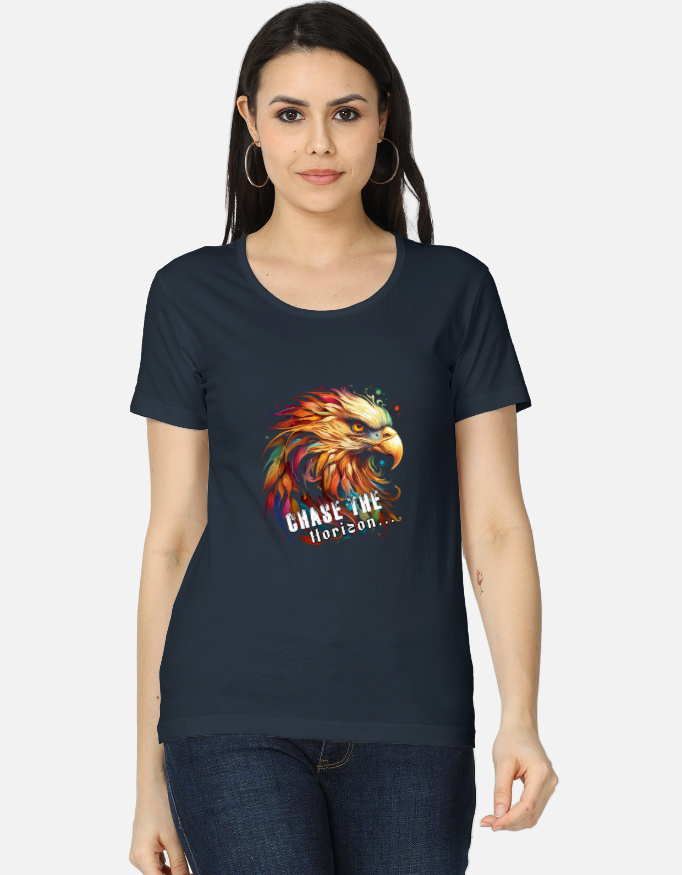 - A striking eagle head, nose angled to the horizon, paired with the bold mantra “Chase The Horizon” across the artwork.