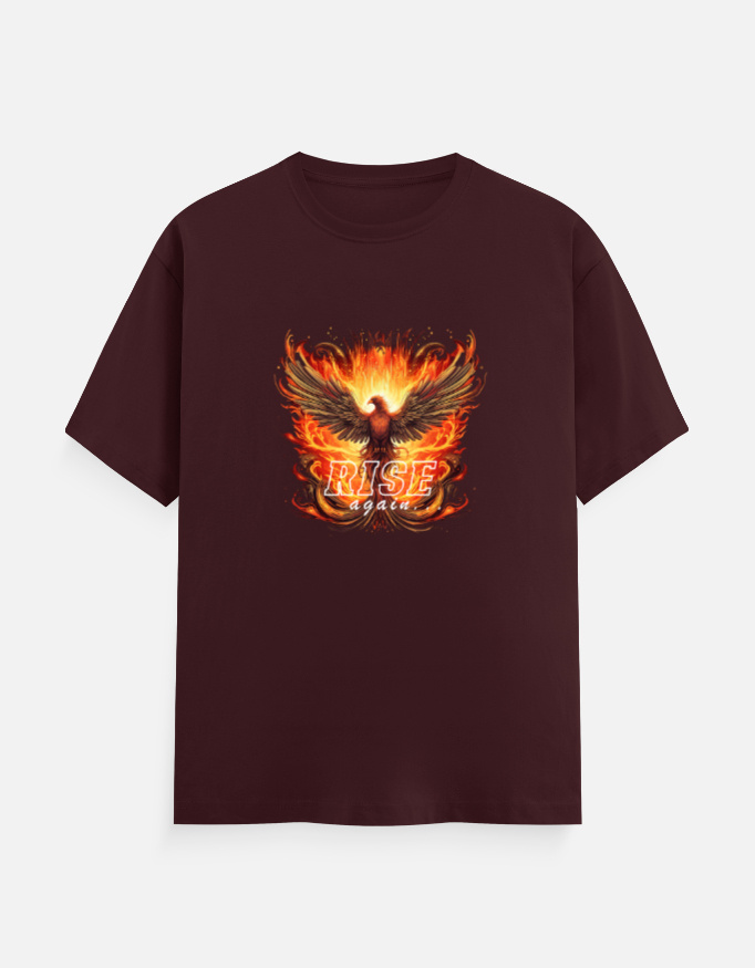 - Graphic: A dynamic phoenix rising from flames, paired with the bold phrase “Rise Again.”