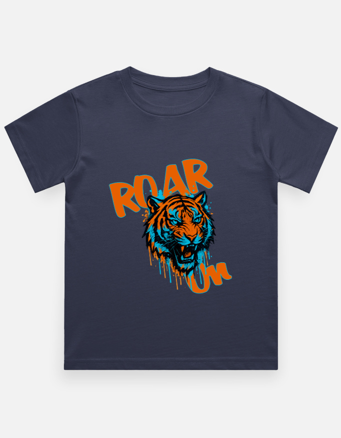 Roar into style with our Roar On! Tiger Graphic Tees for Boys. This head-turning crewneck features a dynamic graffiti-inspired tiger and the motivational slogan “Roar On!”—designed to inspire confidence and unleash imagination.