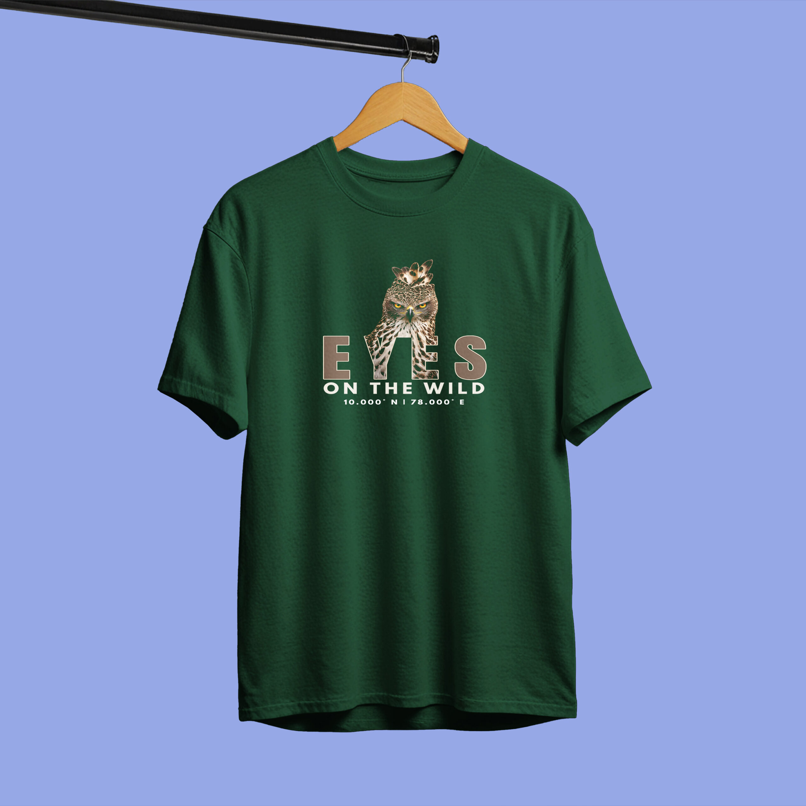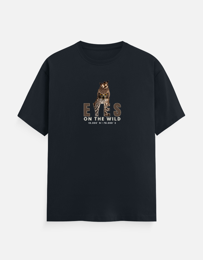 Step into a world where style meets the untamed spirit of nature with Sudhiya’s Minimal Nature Lover T-shirts for Men—a design that speaks louder than words. Inspired by the fierce and focused presence of the Changeable Hawk Eagle, this t-shirt showcases a clean, minimal graphic paired with bold typography that reads “EYES ON THE WILD”, along with the coordinates 10.000° N | 78.000° E—a subtle nod to nature and exploration. This piece is not just apparel; it’s an identity for those who observe, admire, and live for the wild.