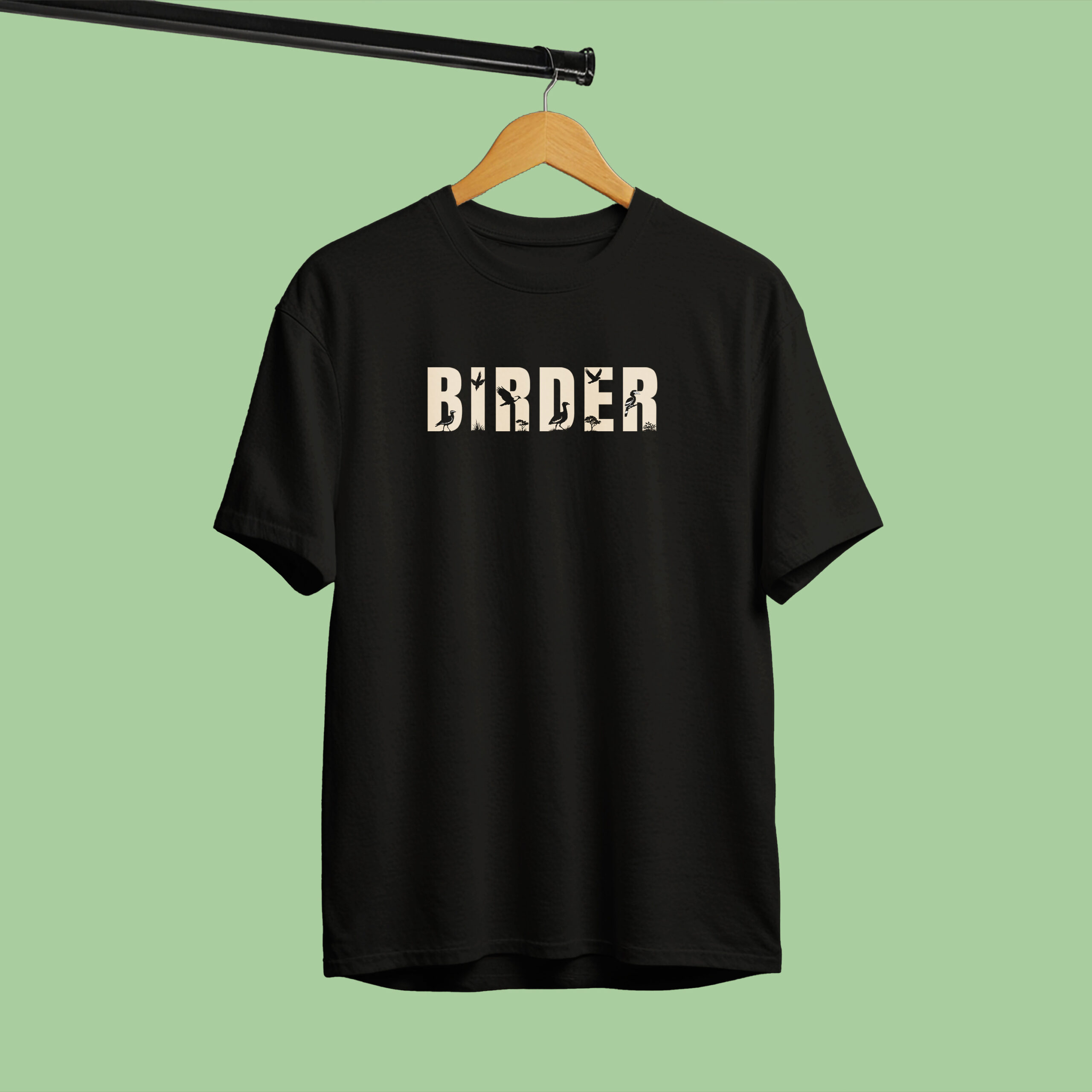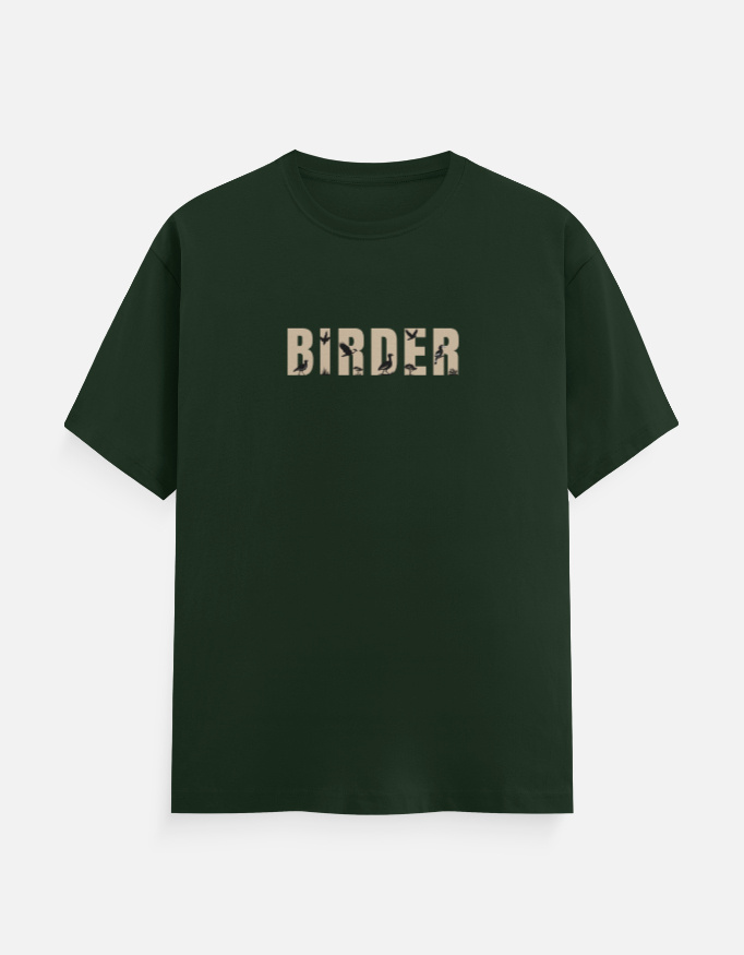 The BIRDER typography design is printed using high-quality Minimal DTG (Direct-to-Garment) printing, ensuring sharp detailing and vibrant clarity. Each bird silhouette inside the letters is clearly defined without feeling heavy on the fabric.
