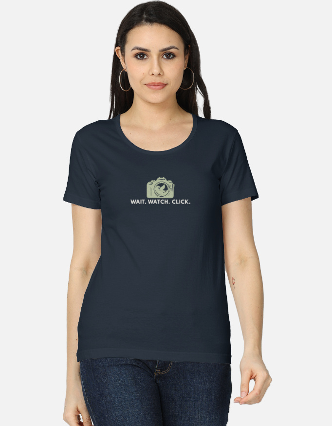 The Minimal Nature Lover Tee for Women – WAIT. WATCH. CLICK. Edition is designed for women who move with purpose and observe with intention.