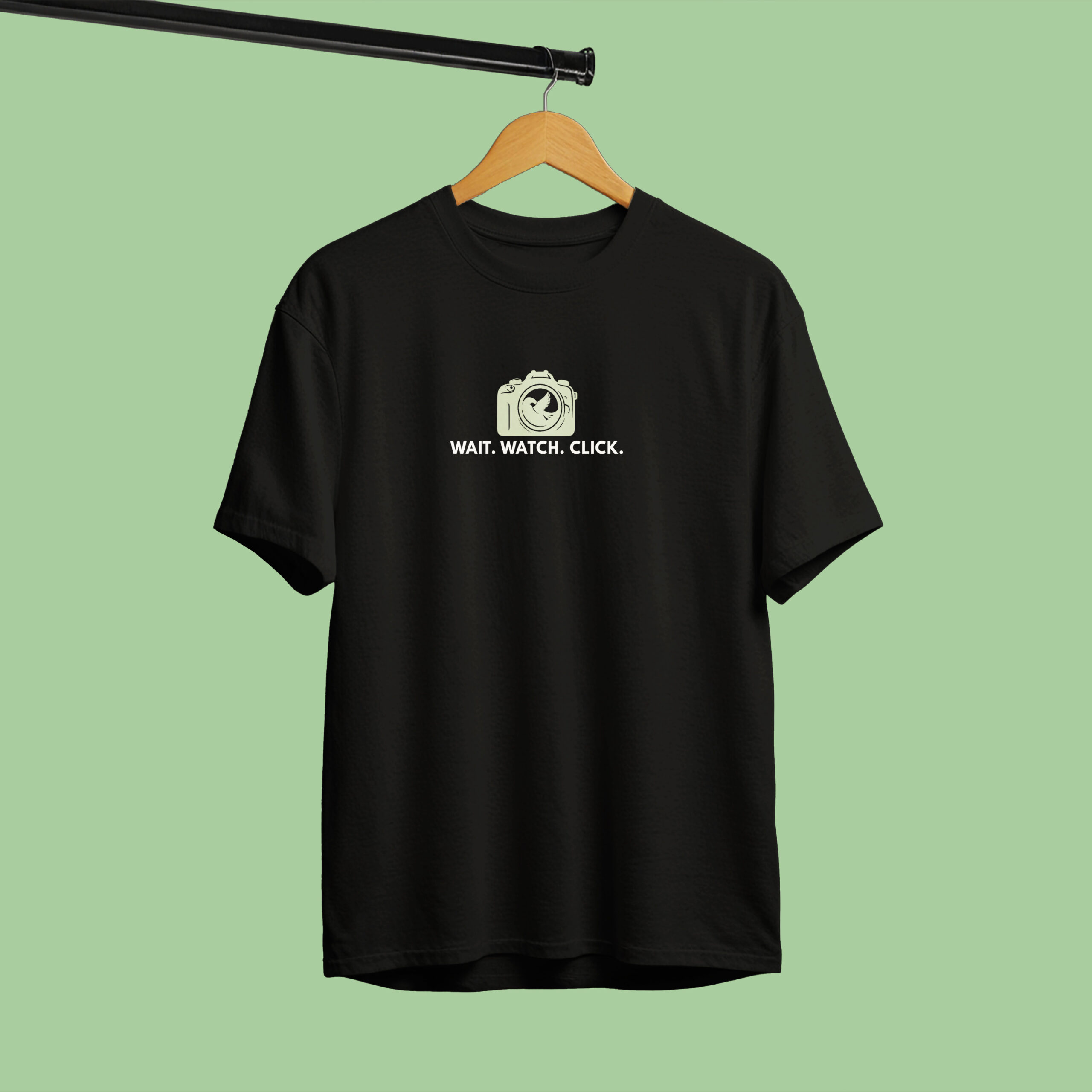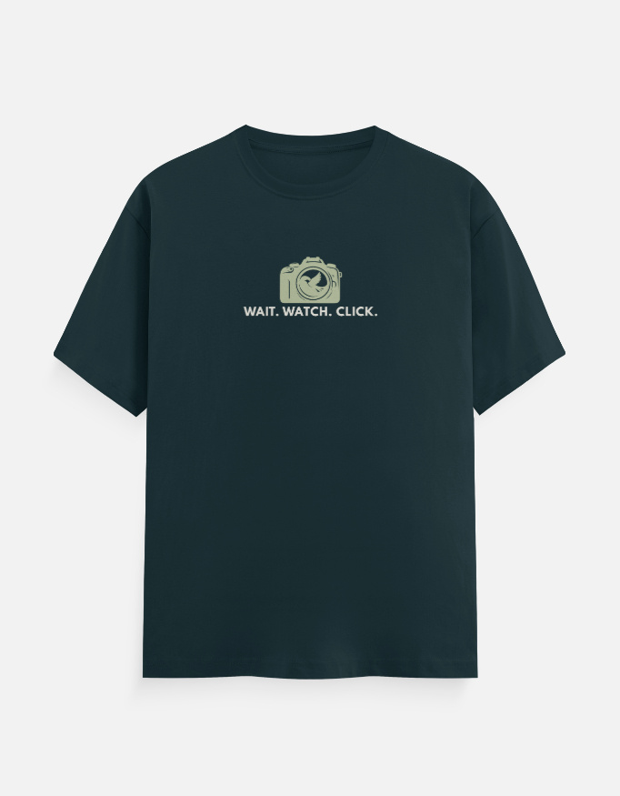 Sudhiya’s Minimal Nature Lover Tees for Men is inspired by the silent thrill of waiting for the perfect frame. The design features a clean, minimal camera illustration — and inside the lens, a bird — symbolizing focus, patience, and passion. Below it, the powerful words “WAIT. WATCH. CLICK.” define the mindset of every true nature lover and wildlife enthusiast.