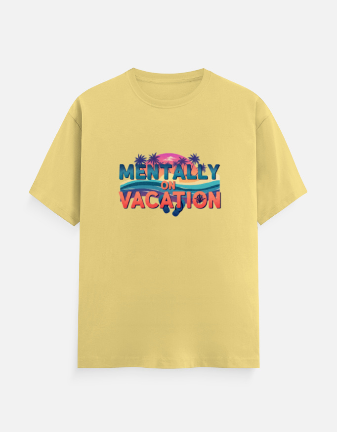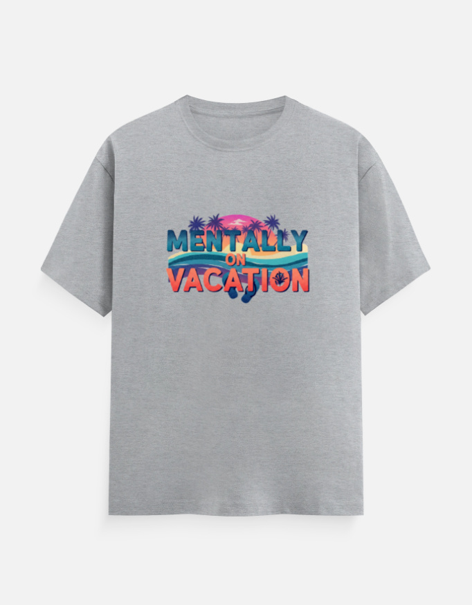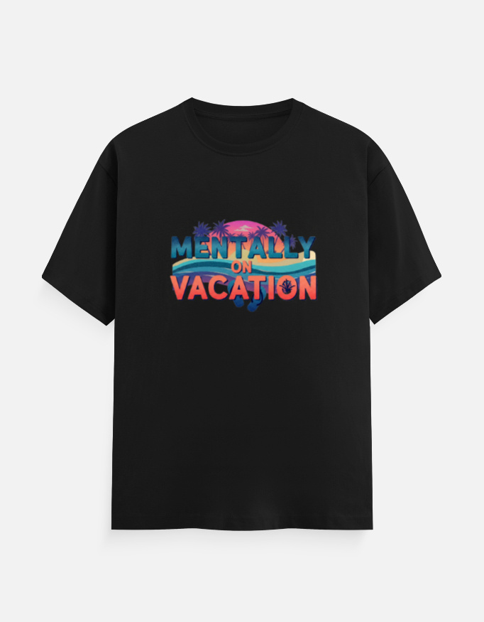 Take a mental getaway without leaving your closet with our “MENTALLY ON VACATION” typography tee. Designed to fuse retro travel poster charm with modern comfort, this shirt uses 100% premium cotton to stay soft wash after wash while delivering a bold, beachy vibe through its aqua-and-coral palette and grainy sunset backdrop.