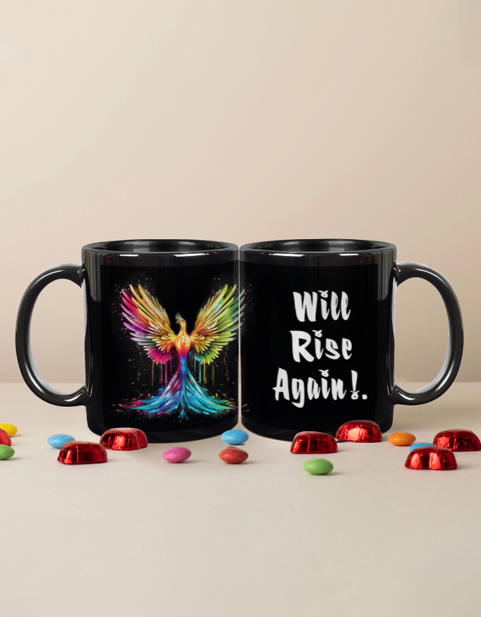 Ignite your mornings with our stunning “Will Rise Again!” coffee cup, showcasing a vibrant, colorful phoenix rising with wings spread wide. Crafted from high-quality glossy ceramic, this 11 oz mug is the perfect coffee mug for those who believe in renewal and resilience. Its bold black finish adds a classic, elegant touch, making it the best coffee mug for your daily rituals, whether for coffee, espresso, or hot chocolate.