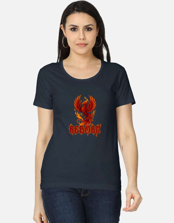 - Print: Center-front phoenix graphic with bold “Reborn” text for maximum impact
