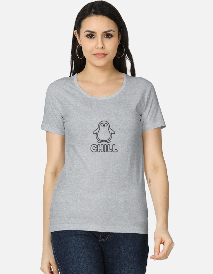 Express your cool, playful personality with our women’s minimalistic T-shirt, designed to bring comfort and style together. Crafted from super-combed, pre-shrunk, and bio-washed cotton, this regular-fit T-shirt promises all-day ease, whether you’re lounging, running errands, or catching up with friends. The adorable outlined penguin sitting above the whimsical ‘CHILL’ phrase adds a touch of fun and charm to your everyday wardrobe.